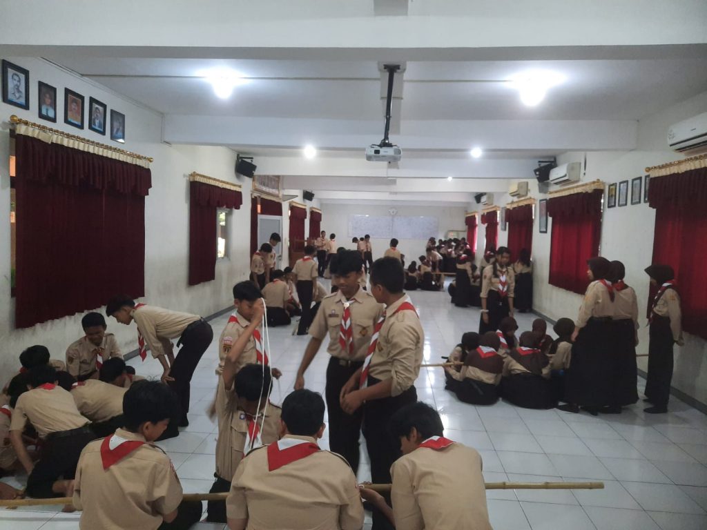 “Satyaku Kudharmakan, Dharmaku Kubaktikan” Pramuka membentuk karakter mandiri, disiplin, cinta alam, dan patriotisme. Siswa belajar survival skill, sandi, tali-temali, dan kepemimpinan dalam regu.